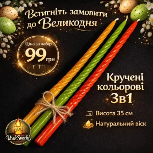 Набір воскових свічок «Кручені кольорові» (3 шт.) — 100% натуральний віск, ручна робота