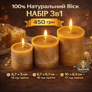 Набір воскових свічок «Східчасті циліндри» (3 шт.) — 100% натуральний віск, ручна робота