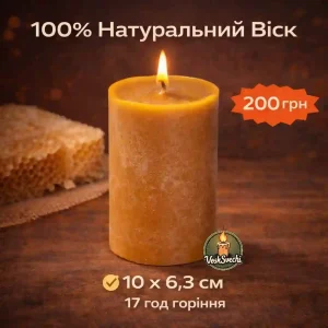 Свічка воскова «Циліндр Преміум» (10 х 6.3 см) — натуральний бджолиний віск, ручна робота
