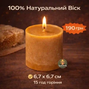 Свічка воскова «Циліндр Медіум» (6.7 х 6.7 см) — натуральний бджолиний віск, ручна робота