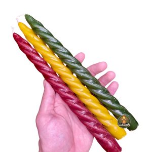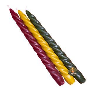 ”Класичні кручені” воскові святкові свічки – набір 3 шт, три святкові кольори