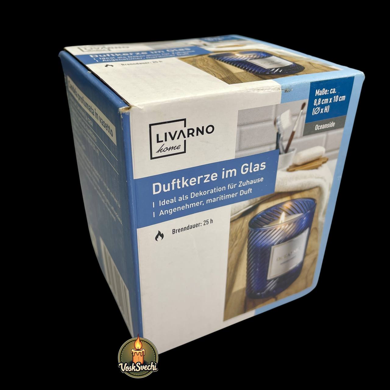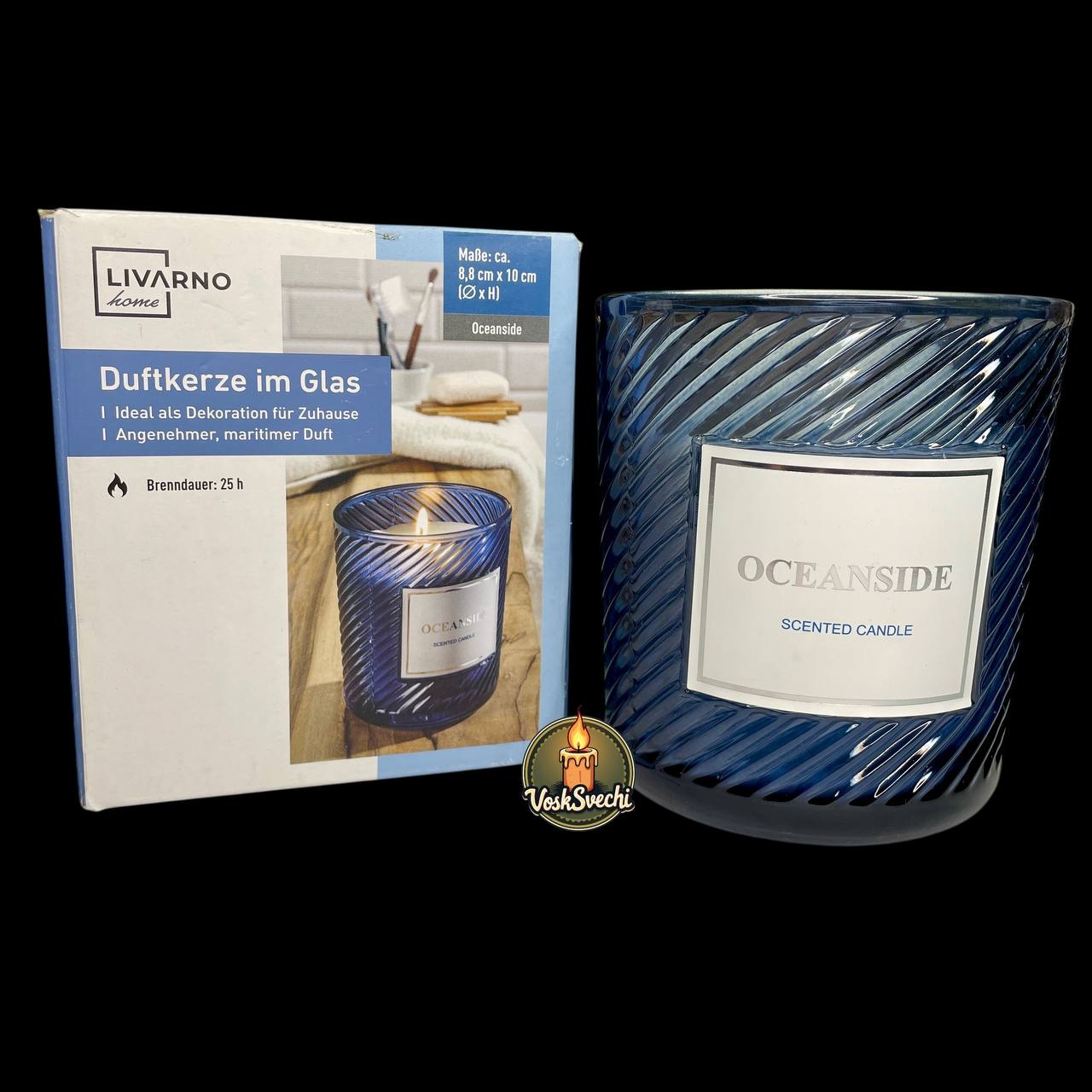 Вишукана ароматизована свічка Livarno Home Oceanside — це поєднання стилю, якості та затишку. Вона виготовлена у міцному скляному стакані насиченого синього кольору з елегантним рельєфним візерунком, що створює неповторну гру світла при горінні.