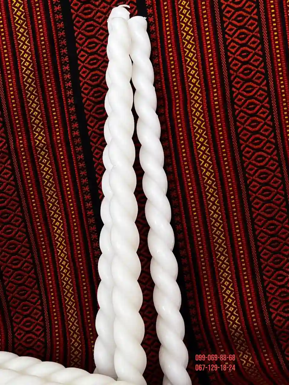 Пориньте в атмосферу вишуканості з нашими декоративними свічками. Унікальний спіралеподібний дизайн у поєднанні з класичним білим кольором робить їх ідеальним вибором для урочистих подій, романтичних вечерь або як центральний елемент інтер’єрного декору.