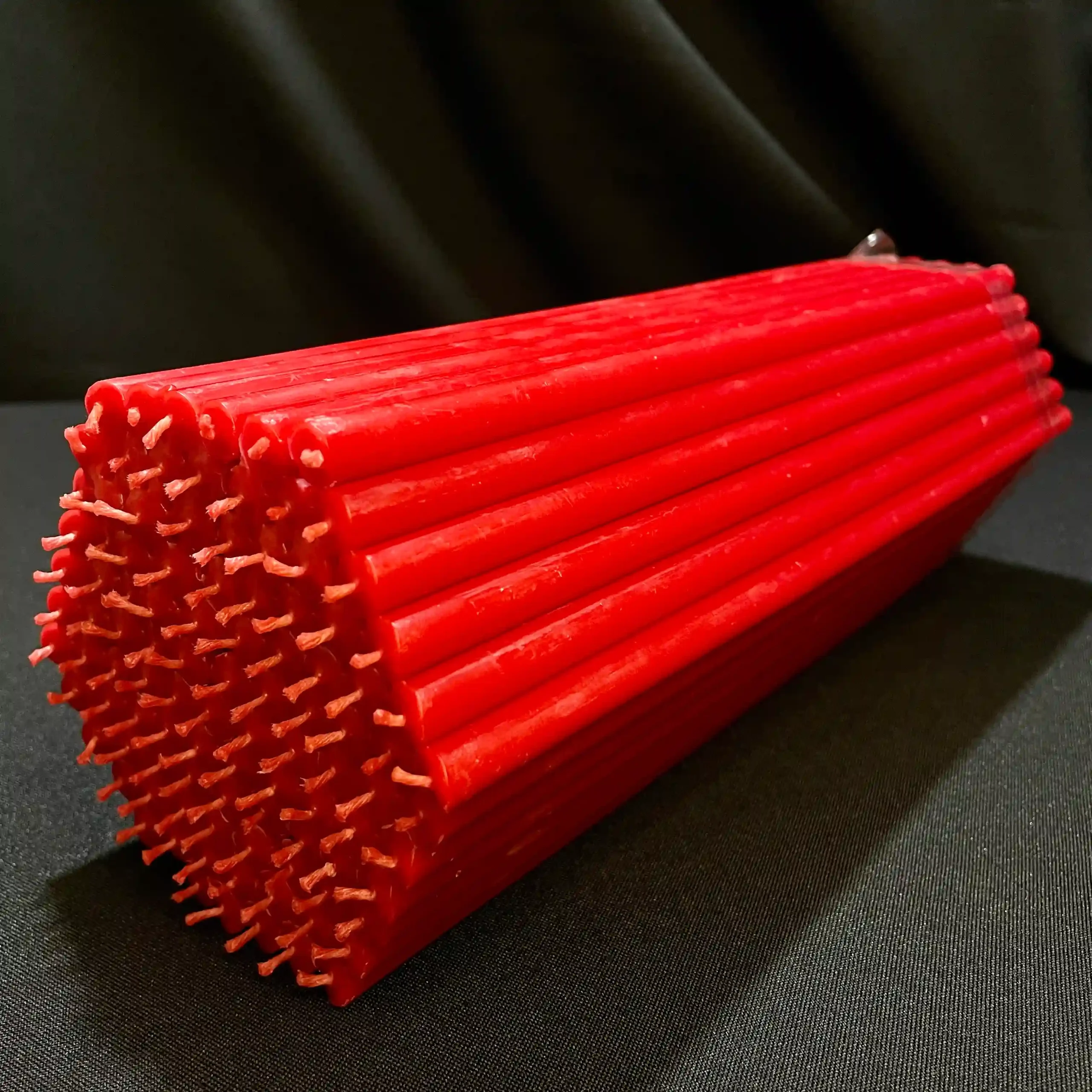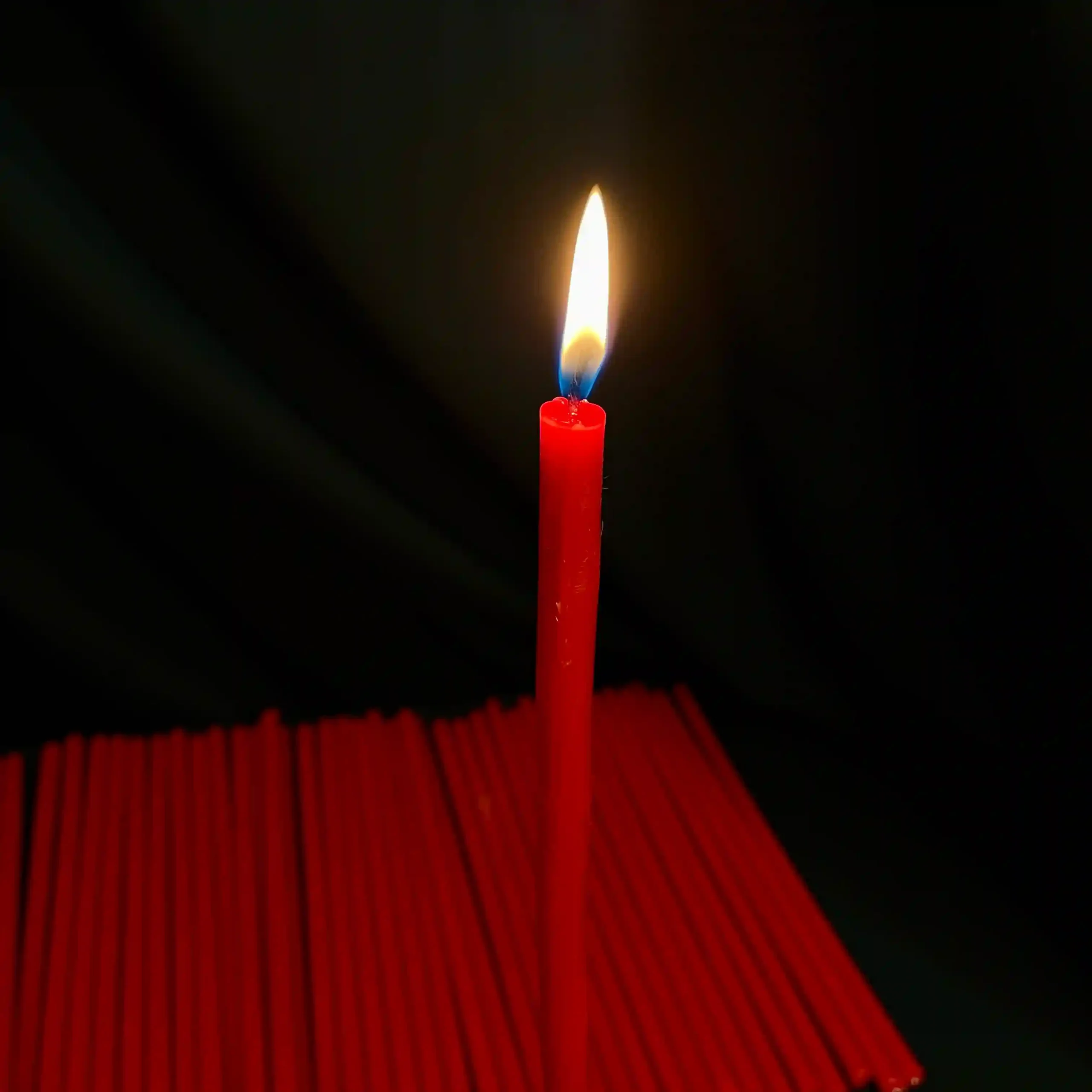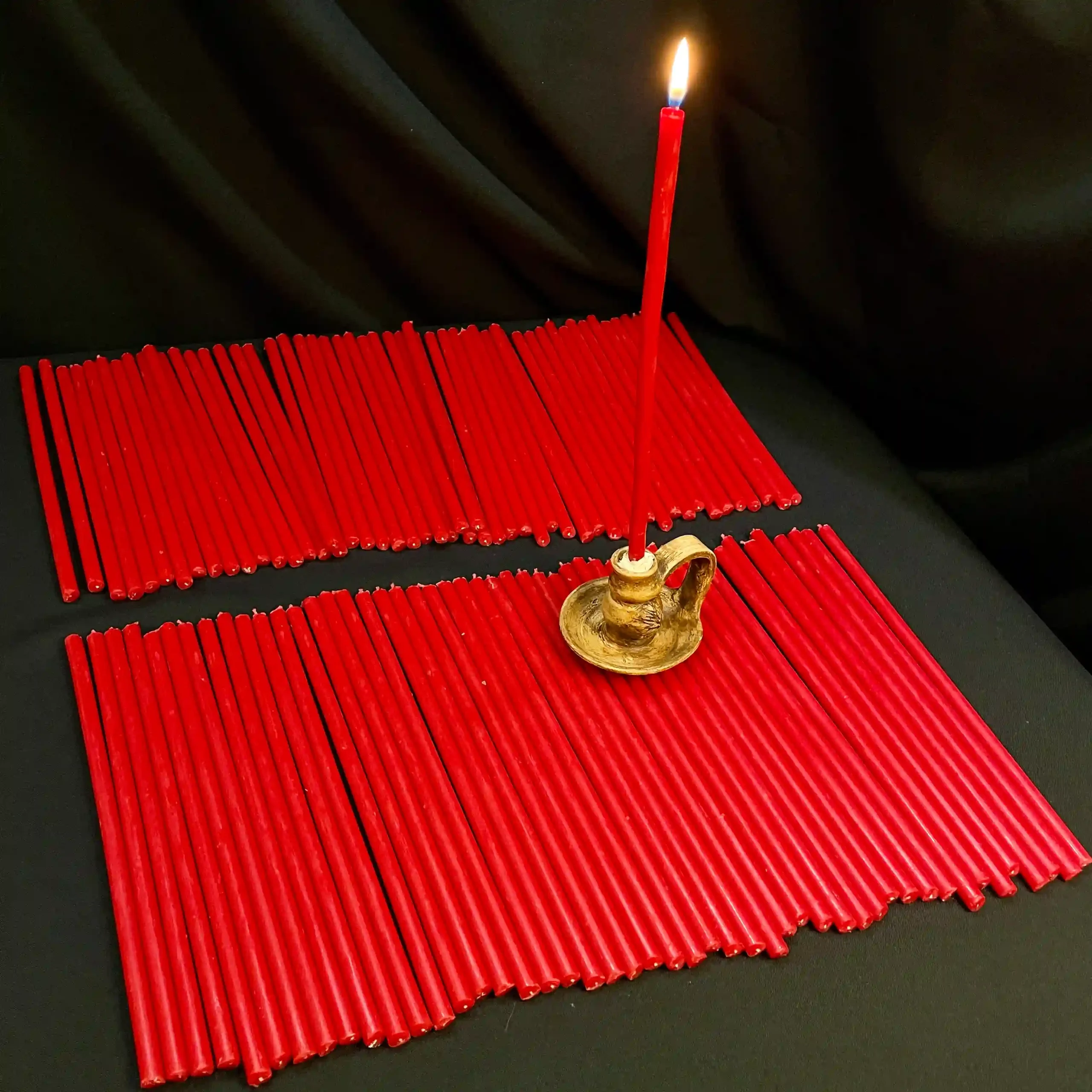Червона свічка символізує безмежну любов, життя та духовну перемогу. Її полум’я допомагає зосередитися на головній меті, очищує серце від страхів та пробуджує рішучість. У традиціях це символ здоров’я, радості та захисту.