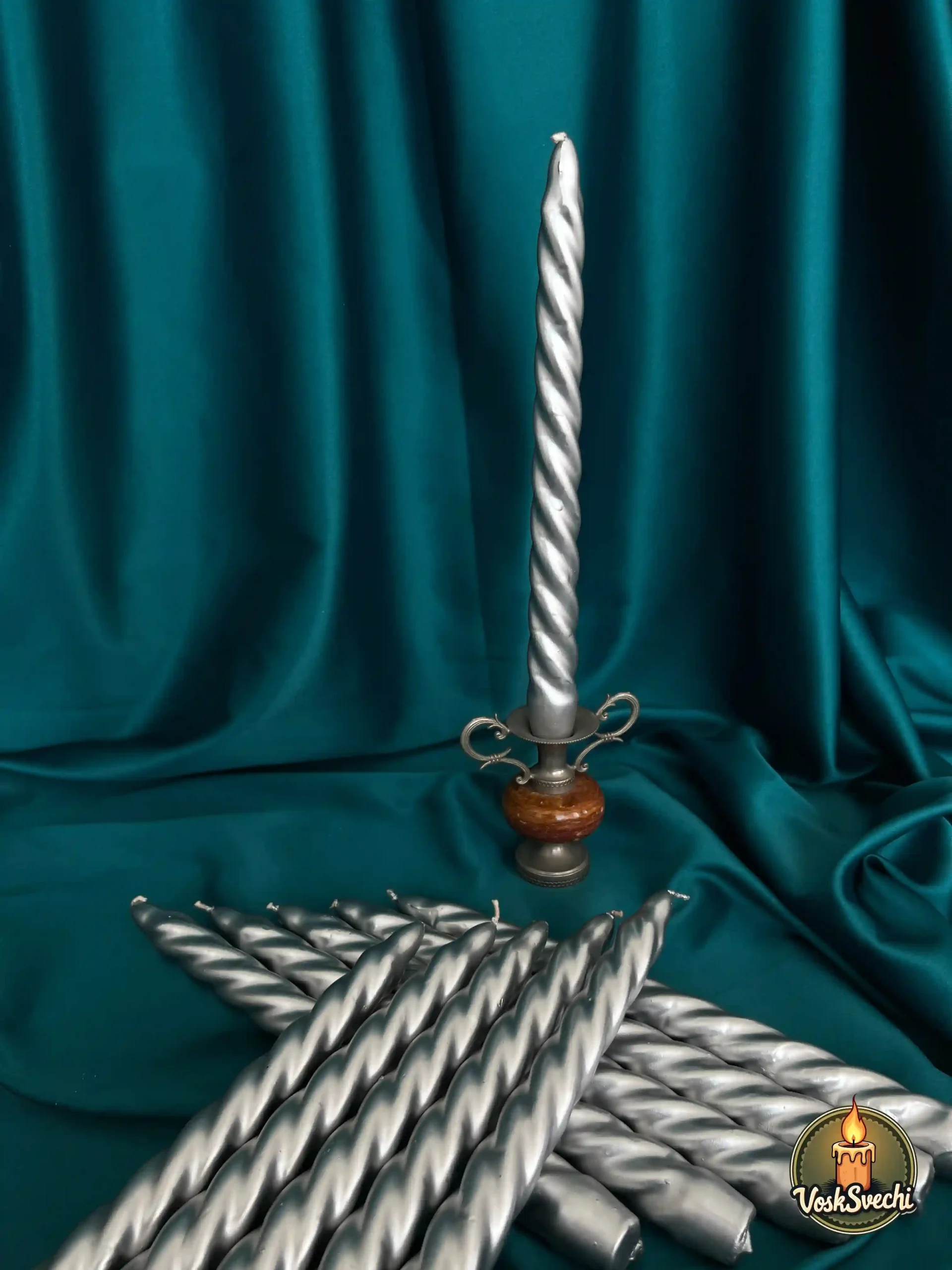 Срібні декоративні свічки «Класична кручена» (20 шт) 24 см — Vosksvechi