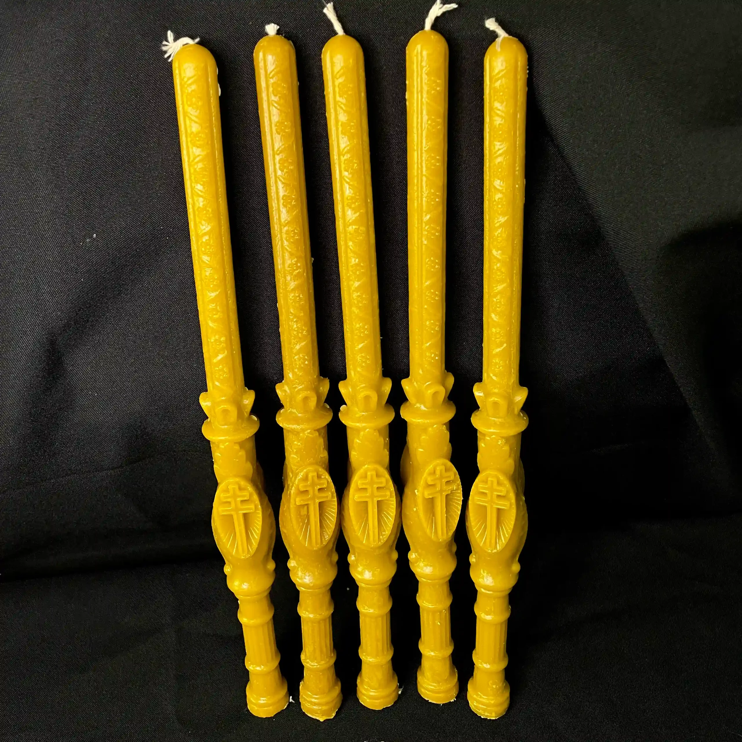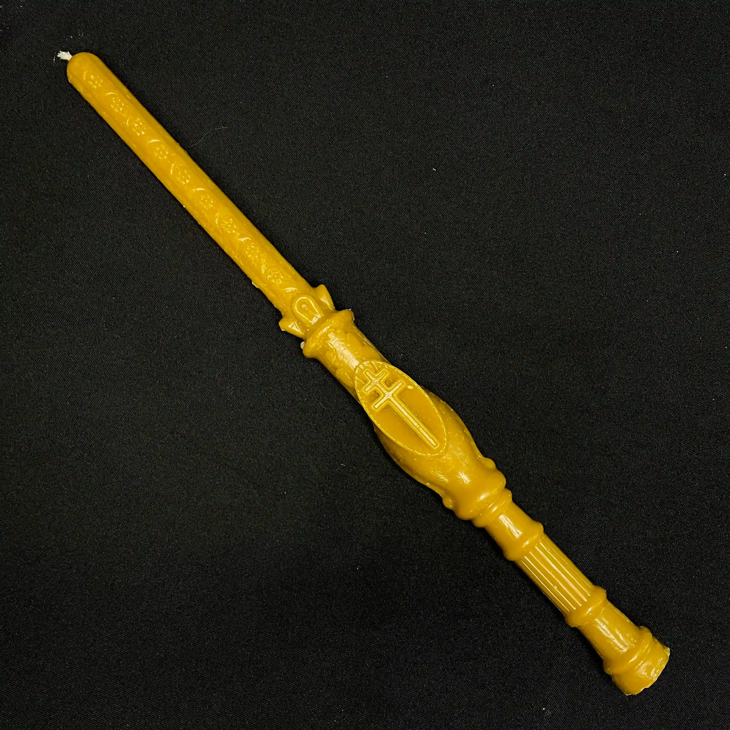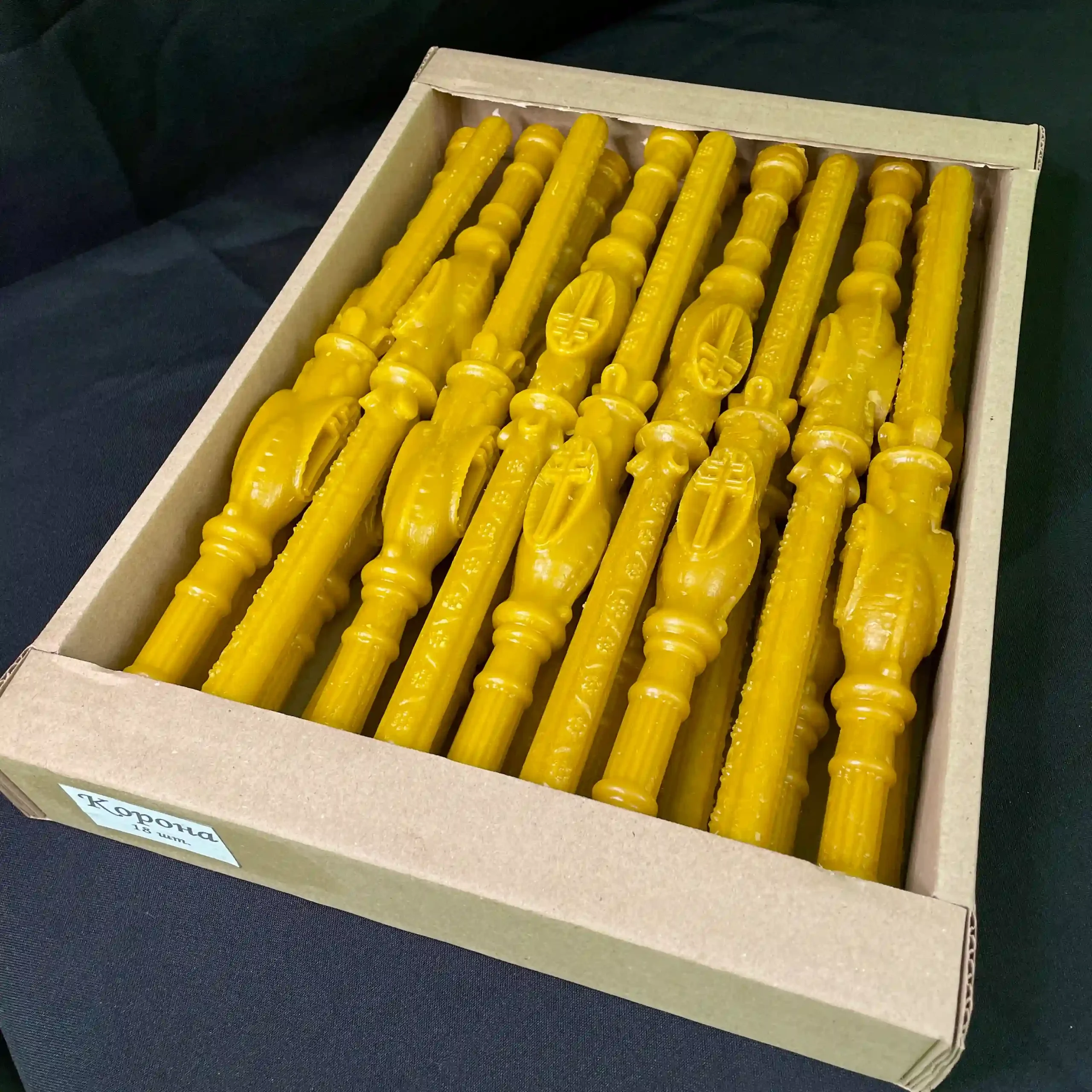 Шукаєте особливий символ для важливої духовної події? Воскова свічка «Корона» — це велична модель, що поєднує в собі глибоку символіку та майстерне виконання. Її центральним елементом є об’ємне зображення хрестика, вписане у форму корони, що височіє над рельєфним стовбуром. Завдяки висоті 37 см, ця свічка стане центральним акцентом під час вінчання, хрещення або урочистої служби, наповнюючи простір шляхетним медовим ароматом.