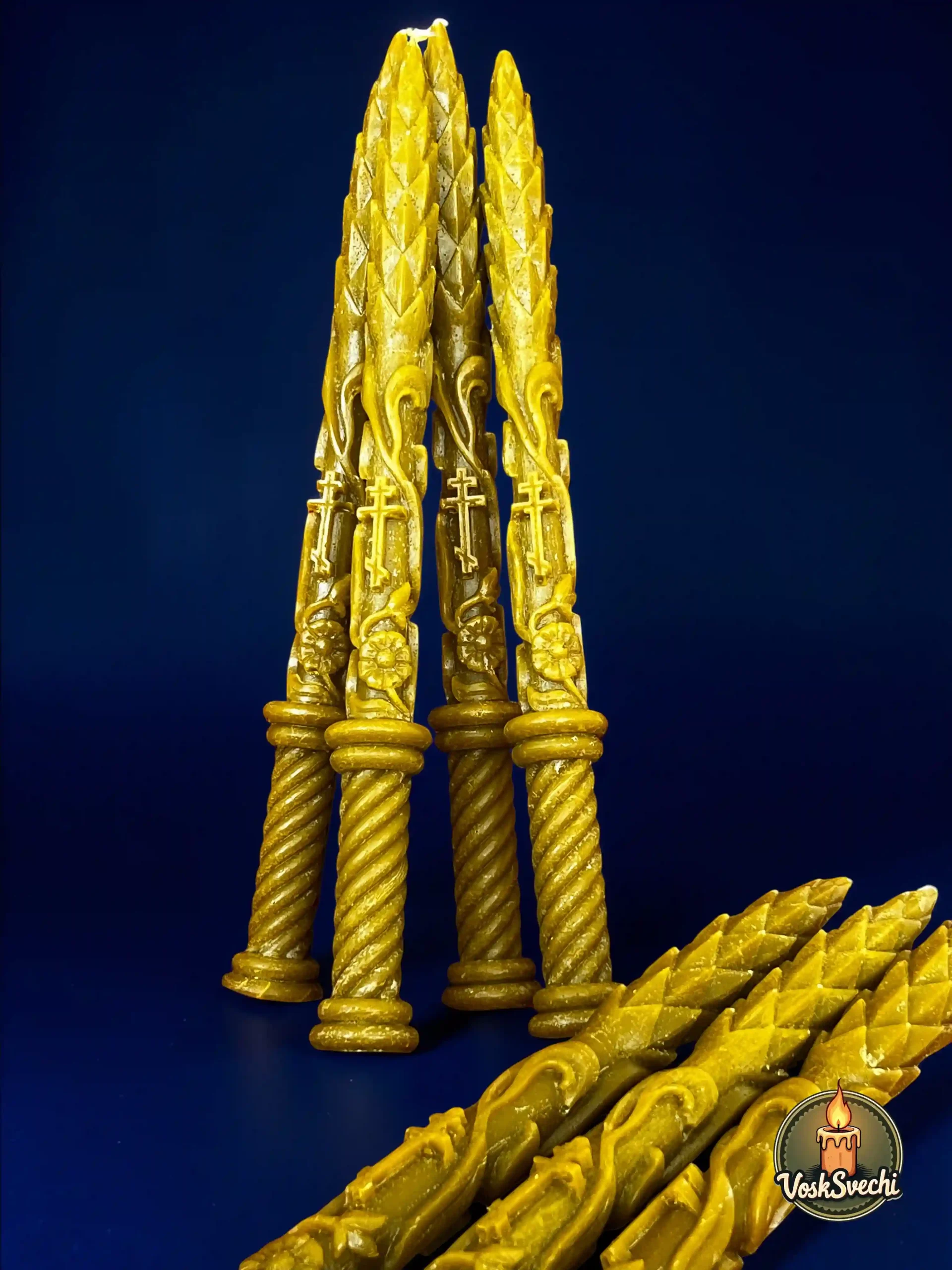 Вишукана свічка з художньою різьбою та приємним медовим ароматом. Тепер доступна для замовлення від 1 одиниці, що дозволяє вам зібрати власний набір для будь-якої події.